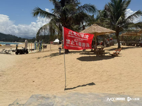 事发海域插着旗子提醒有暗流。