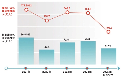 法治的权威,不仅体现在对严重犯罪的严厉惩处,更根植于对多发犯罪的系统治理与源头预防。针对一度高发的醉酒驾驶问题,2023年底,“两高两部”联合出台《关于办理醉酒危险驾驶刑事案件的意见》,统一执法司法标准,推动各地全面准确贯彻宽严相济刑事政策。随着执法规范性与公众守法意识同步增强,成效显著。以2024年为例,检察机关受理审查起诉危险驾驶犯罪32.4万人,起诉27.6万人,同比分别大幅下降41.7%和16%,道路交通安全形势持续好转。