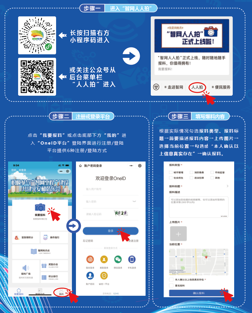 在此基础上,“智网人人拍”小程序的开发,将充分利用新媒体和新科技手段,向全体市民提供更加便捷、更加高效的隐患线索报送渠道,打造“我是网格员”的全新升级版。