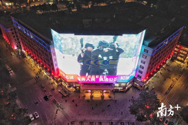 通过同时展播公安公益元素视频和祝福标语,营造出广州一江两岸三地同穿“警服”的美好祝愿,营造庆祝首个人民警察节的良好氛围。