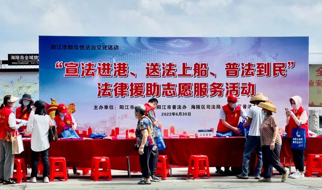 6月30日上午,阳江市司法局、阳江市普法办联合海陵区司法局、海陵区普法办在海陵区开展“宣法进港、送法上船、普法到民”法律援助志愿服务活动,以法治方式提升公民素养,以实际行动推动法治阳江建设。
