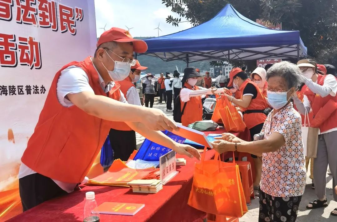 在闸坡国家级中心渔港,党员志愿者现场摆摊设点,向群众派发《宪法》《民法典》《反有组织犯罪法》《法律援助法》《保障农民工工资支付条例》《未成年人保护法》《证明事项告知承诺制宣传手册》《法律援助申请市域通办有关事项通告》等法律法规宣传资料,结合生活中常见的问题向群众宣讲创建文明城市、禁毒防毒、防范电信网络诈骗等相关知识,引导群众依法办事、遇事找法、解决问题用法、化解矛盾靠法。