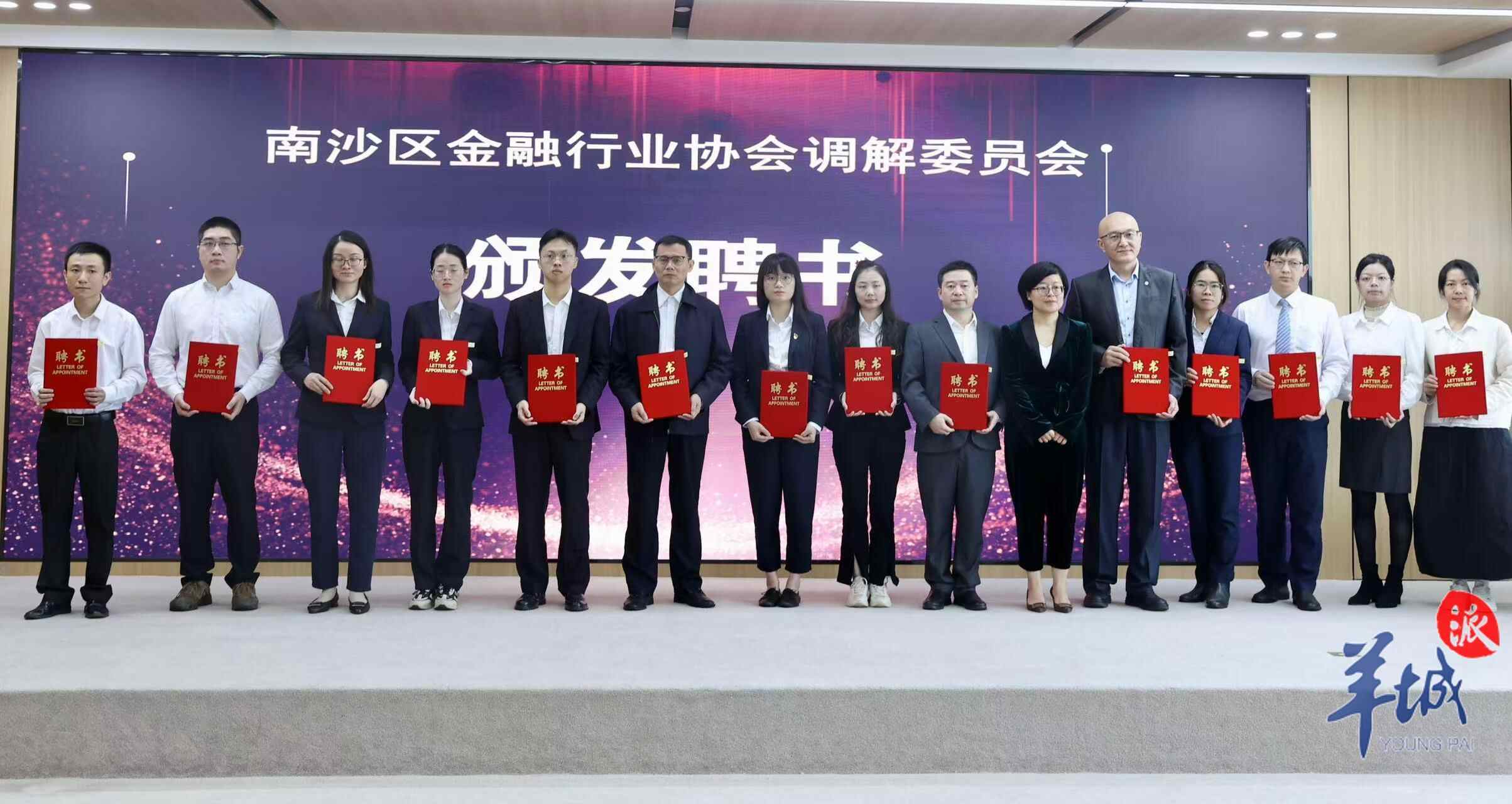 该调解委员会聘任了15名来自南沙区金融行业的从业人员作为特邀调解员并为其颁发聘书。
