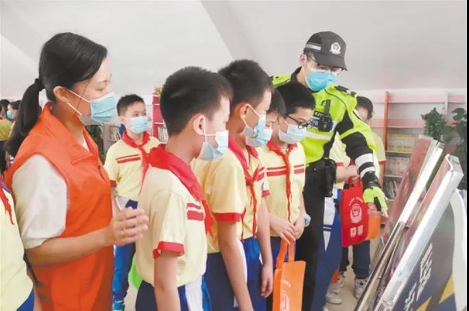 民警向学生讲解交通安全知识。