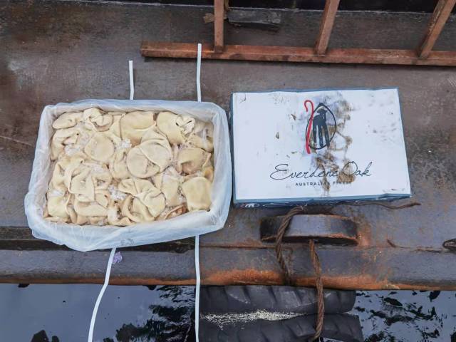近日,广东深圳海警局查获一批海上走私冻品,抓获涉案人员4名,查扣涉案船舶1艘、走私冻品91.6吨,案值逾350万元。