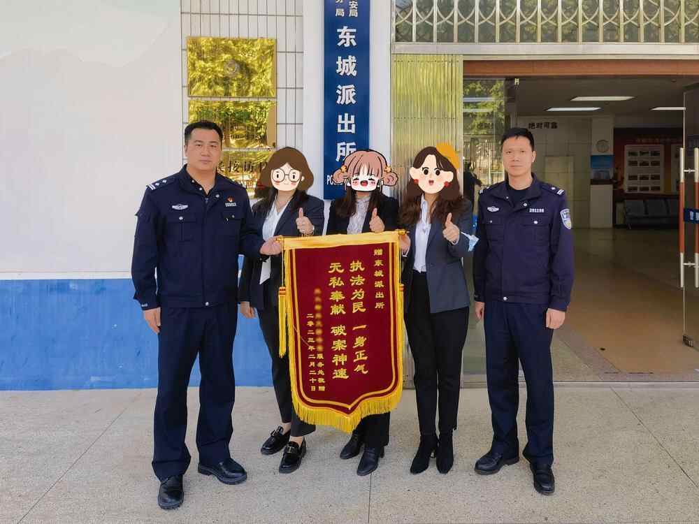 失窃业主们收到失而复得的财物欣喜不已,被东城公安认真负责的工作态度、全心全意为人民服务的精神所感动,特意在“平安厅”信箱写下两封感谢信。业主于先生与小区的物业公司专程向东城公安分局东城派出所送来印有“执法为民,一身正气,无私奉献,破案神速”的锦旗表达谢意。