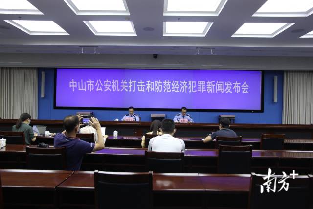 5月17日上午,中山市公安局召开打击和防范经济犯罪新闻发布会。翟凯欣摄