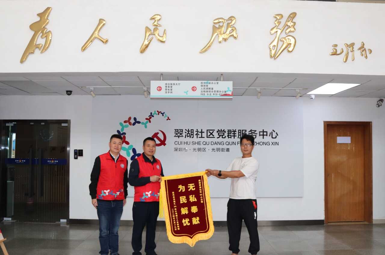 诉求人向社区赠送“无私奉献 为民解忧”的锦旗