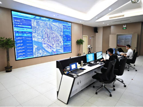 进入综治中心的指挥大厅,一面巨大的电子屏幕实时显示着辖区各个角落的监控画面、人流数据等,这是街道的“智慧大脑”。在风险隐患处置方面,天河区前进街综治中心以“综治中心+指挥中心”双核驱动,全面发力。